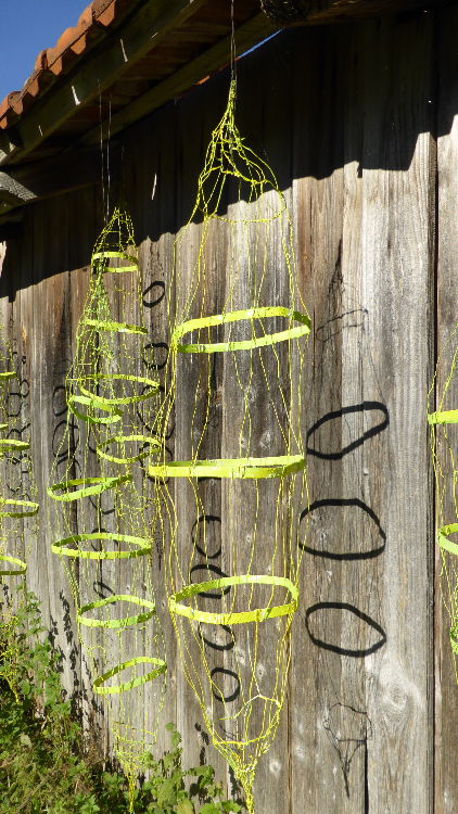 "Puppenhüllen der Prosecco-Schwärmer" (Drahtobjekte)