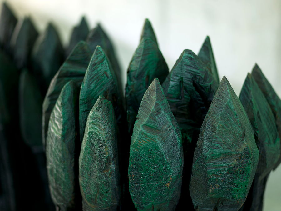 "Wirbelsturm", "Blitze", "brechende Welle" (Holzobjekte)