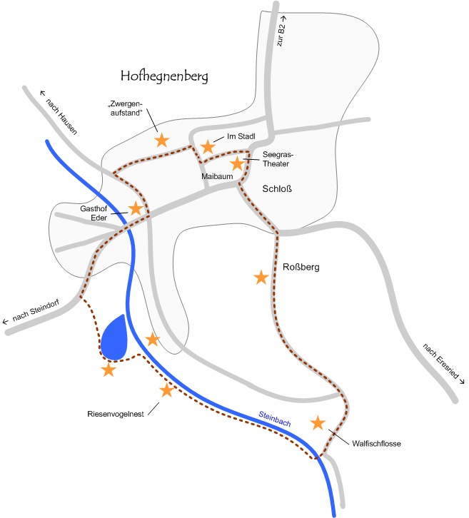 am Fabel-, Geschichten- , ...weg entlang des Steinbachs und den Roßberg
